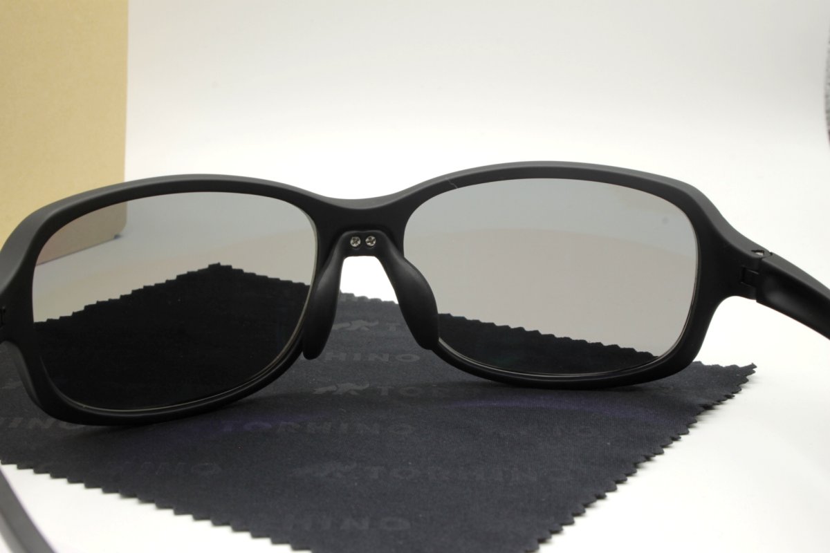フレームとレンズのマッチングにより、レンズを拭くとわずかなぐらつきや、フレームを広げたり捻るとキシミ音がする事がございますが、偏光レンズの性能を最大限引き出せるよう、偏光フィルムの歪みを出来るだけ抑えレンズ脱落も防ぐギリギリのセッティングを行っている為です。